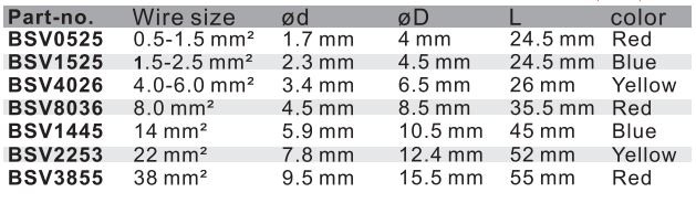 Insulation Material: Vinyl (PVC) Terminal Material: Copper Terminal Thickness: 1.0mm Temperature rating: 75°C max.